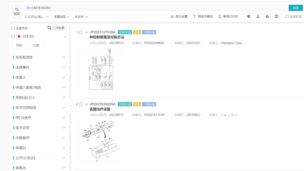 In FTO analysis targeting the Japanese market, utilizing FI/FT classification codes for retrieval is crucial. Due to differences in language conventions, Japanese patent applicants use significantly different technical terminology compared to patents from other countries, thus keyword searches carry a high risk of missed detections. FI/FT classification codes, however, provide a very detailed division of technical fields, making it easier to find the corresponding classification code for the target technical solution, thereby improving search efficiency. FI/FT classification codes can be searched not only in the Japan Patent Office database but also in numerous commercial databases, such as the Incopat database, as shown in Figure 3.